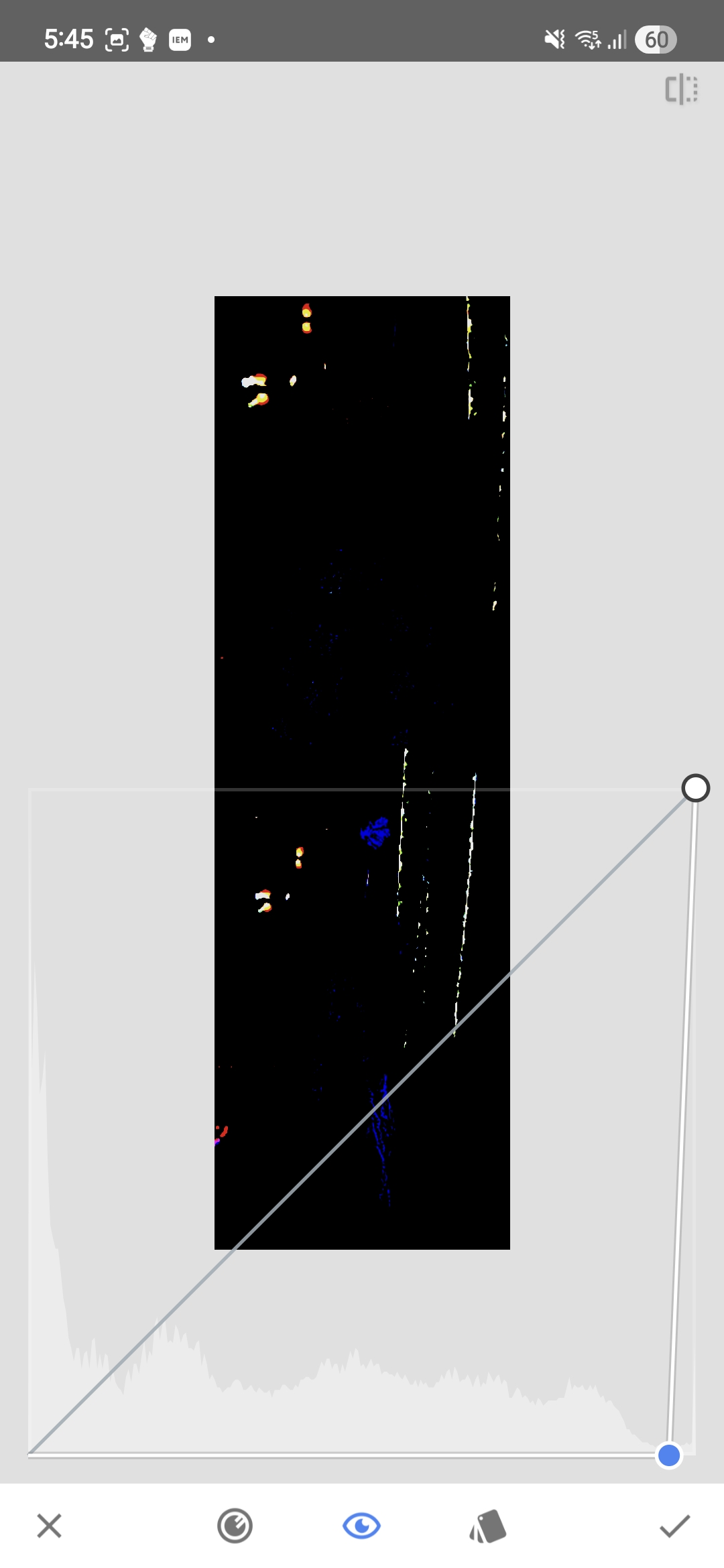 In the next screenshot, instead of using the black point to inspect the threshold, the white point is moved to that same position.